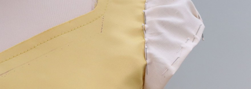 With the sleeves attached the bodice is close to finished. Up next, adding binding to conceal the raw edges. Before starting I gave the bodice a good press using a press cloth.
